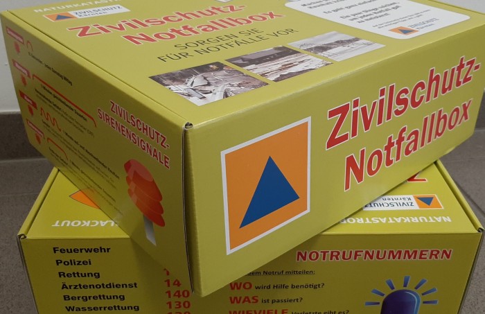 Il presupposto più importante per affrontare le situazioni di crisi nel comune è la sensibilizzazione a tutti i livelli. Sia a livello dei decisori politici che delle organizzazioni di emergenza, così come della popolazione nel suo insieme, tutti devono essere formati e informati nel miglior modo possibile sui rispettivi compiti e responsabilità. La cooperazione con l’Associazione della Protezione civile della Carinzia si è dimostrata una partnership determinante in questo settore. Un box di emergenza è stato presentato al pubblico con una buona efficacia mediatica. Questo box di emergenza della protezione civile contiene “l’attrezzatura di base” in caso di interruzione di corrente elettrica e mostra come ci si può attrezzare “a prova di crisi” con mezzi semplici e senza particolari difficoltà. Il contenuto comprende una radio d’emergenza a manovella indipendente dall’energia elettrica con una torcia incorporata, una lampada a LED, una confezione di gel combustibile per un fornello come cucina d’emergenza, un pacco di pasta della Carinzia e relativo sugo biologico – questo box diventa così un simbolo concreto di resistenza alla crisi. Ci sono inoltre le nostre guide con suggerimenti per la sicurezza, in caso di blackout ed emergenza e l’apprezzato libro di ricette della protezione civile.
